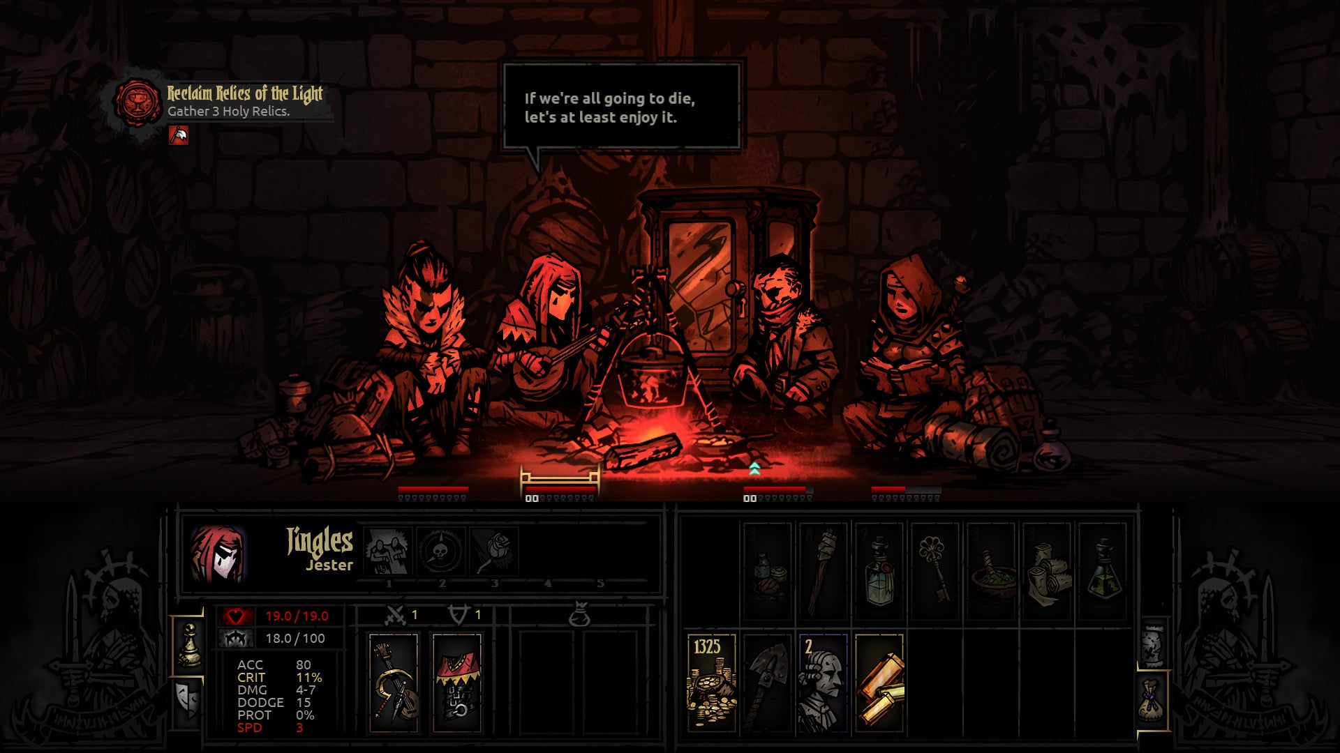 Rest your weary, shell-shocked characters in town at the Tavern or the Abbey to keep their stress in check.
