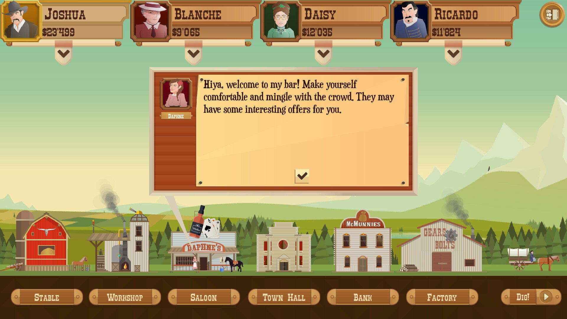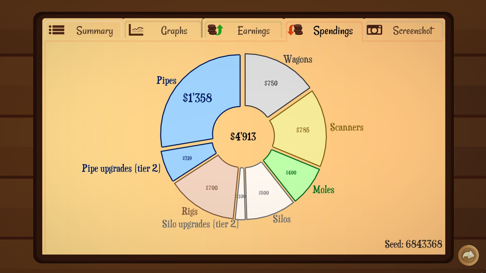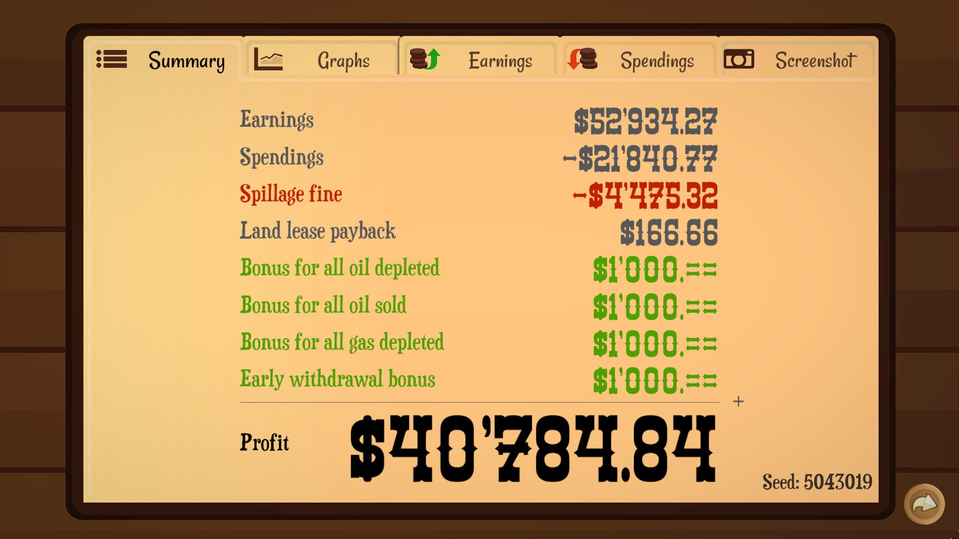 Lease land at the town auction and search for oil. Build a rig, create an efficient pipe network and bring up the oil to store it in silos. Sell the oil at the best times to maximize profits. Then buy essential upgrades in town to cope with rock, gas and ice. Acquire more town shares than your competitors in a bid to become the new mayor.