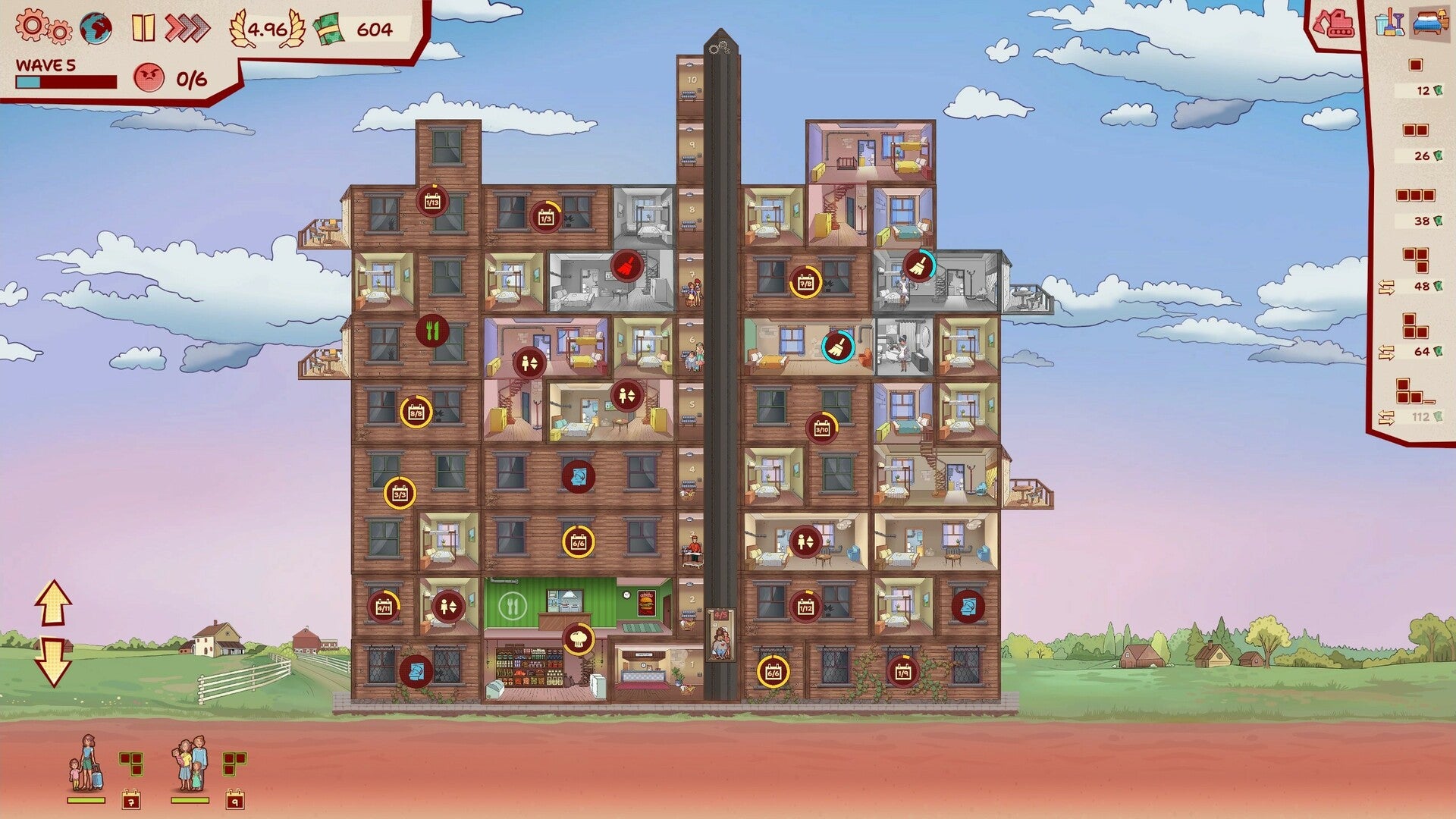 Guests do not want to settle anywhere - they demand a hotel of a certain star rating and a room that suits them. And they won't wait forever, they only have limited patience! Try to serve everyone in order to earn as much as possible and expand your hotel chain.