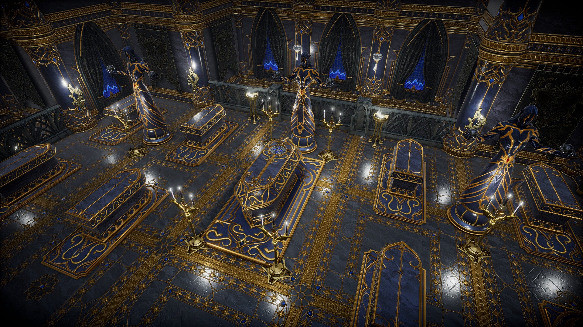 Let it never be said that you are not a benevolent keeper. Gild your prison cells and gift your servants lovely gemstone-topped coffins to rest between their duties.