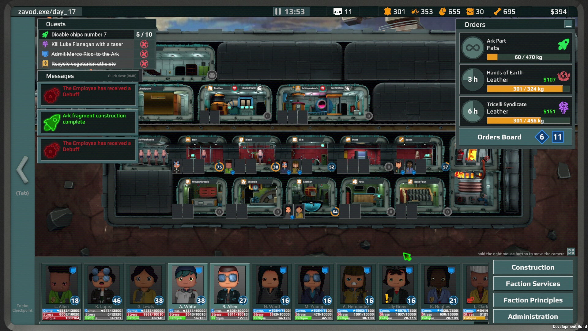 Hire staff with unique quirks, fears and prejudices. Promote hard workers and keep them pampered with improved amenities. As for the lazy ones…they get sent to a special room in the darkest corner of the factory.