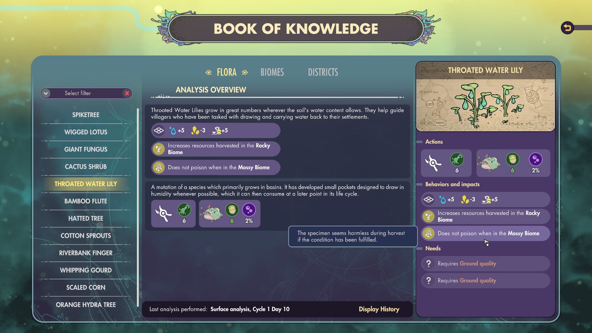 Conduct analysis of the plants and other natural elements of the region and flesh out your Knowledge Book.