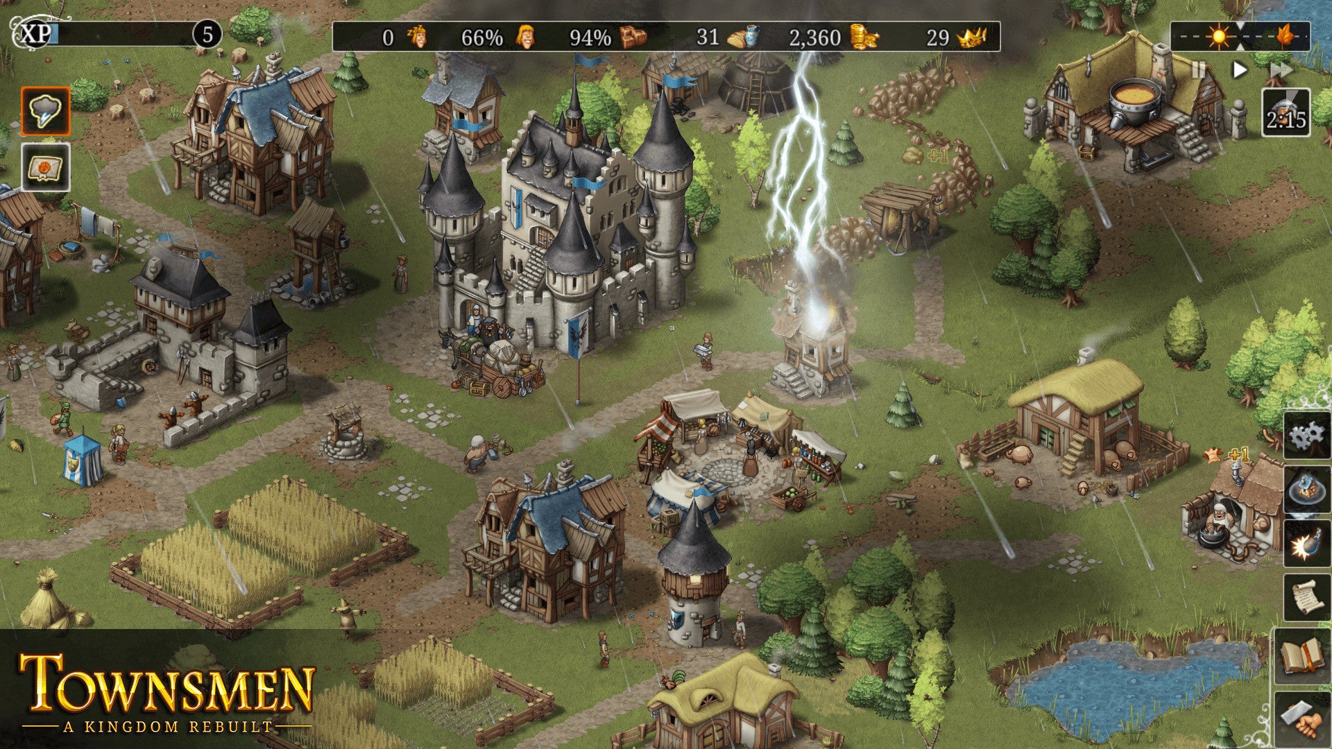 Welcome, your Highness! A vast land awaits your settlers and is ready to be colonized. Send your architects and builders to plan and construct a city. But also send your craftsmen, to cut some wood and to mine ore. Make sure your fields are on fertile grounds, to get all the food for your hungry subjects! Townsmen – A Kingdom Rebuilt hands the crown to you: Guide your people from their first steps in a small village to a massive medieval metropolis with thousands of inhabitants.
