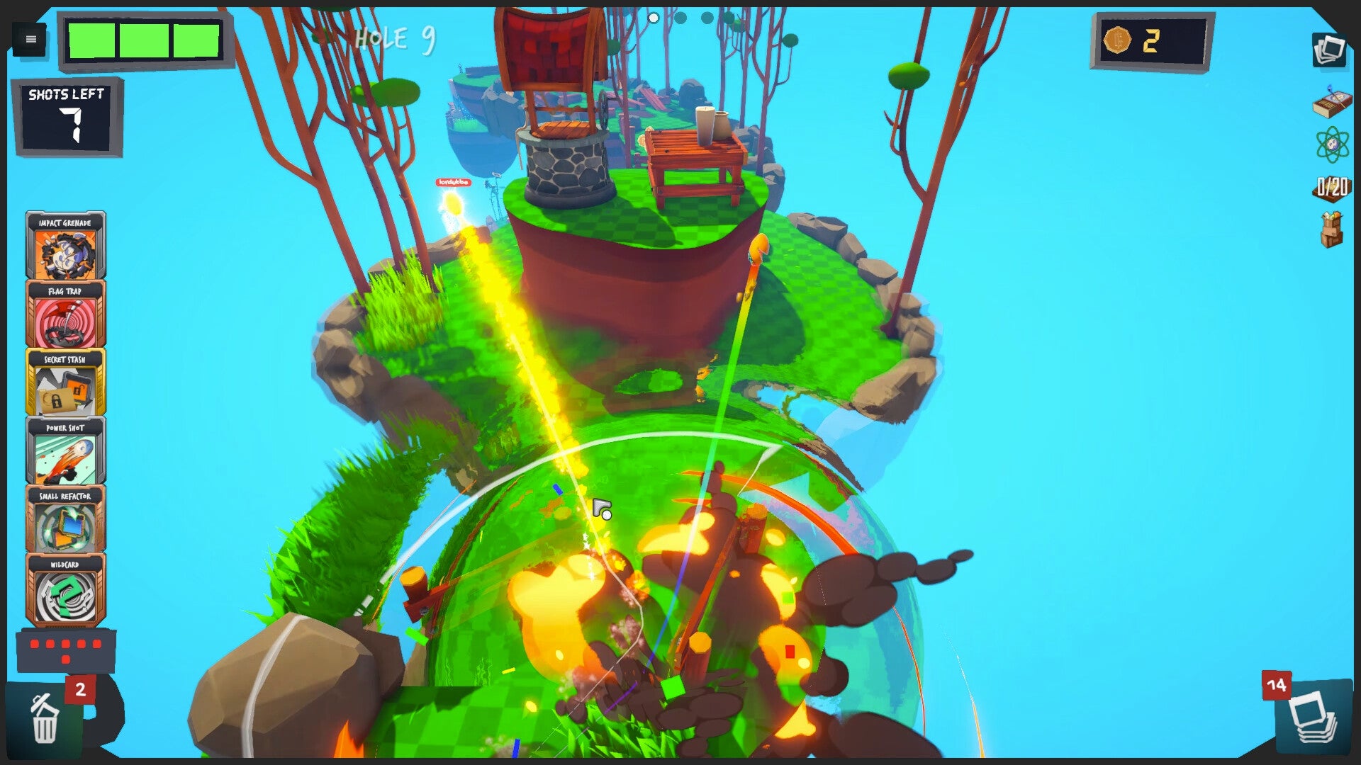 Golfie is a roguelike, deckbuilding minigolf game for 1-8 players. Each run requires strategy, planning, and skill. Build unique decks which will unlock incredible new ways to play, giving you the power to pull off some spectacular shots - or die trying.