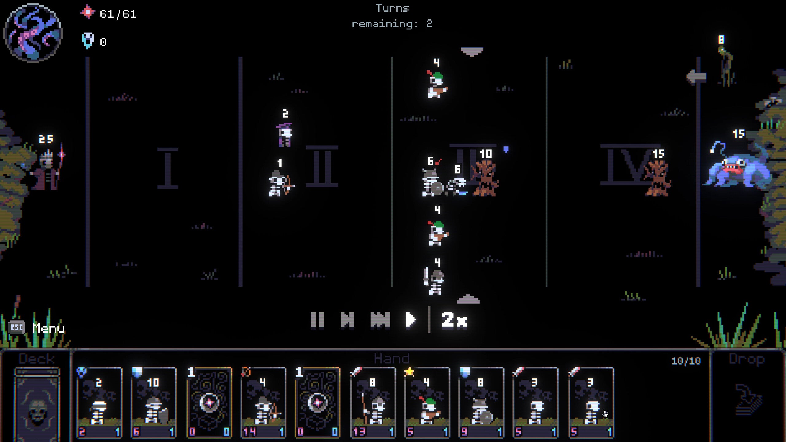 Vast Skull Deckbuilding. Customize your playstyle by unlocking new Skulls and upgrading your units skills.