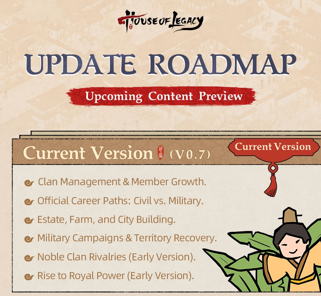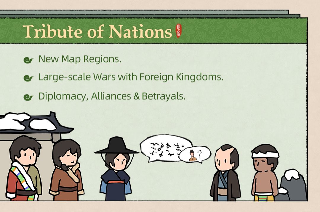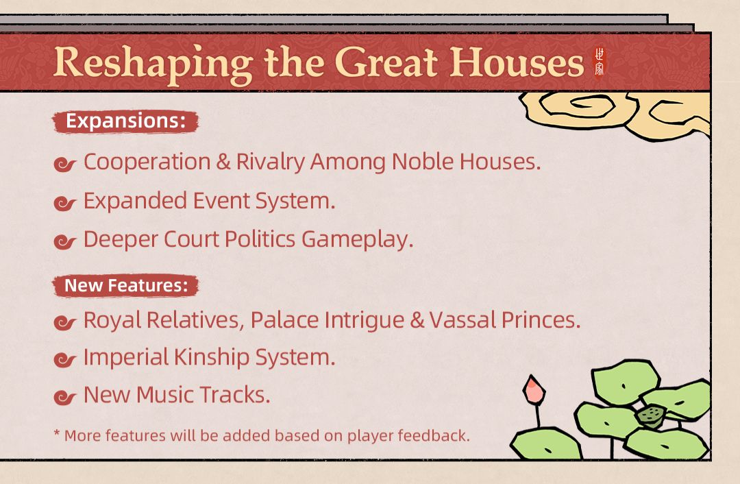 Bestow your clan members with knowledge, wed them to other houses, and propel your kin to greatness, whether by the ink of imperial exams or the steel of battlefields. In this dance of power, cooperation and conflict with rival houses, including the indomitable royal lineage, are woven into the very fabric of your destiny.