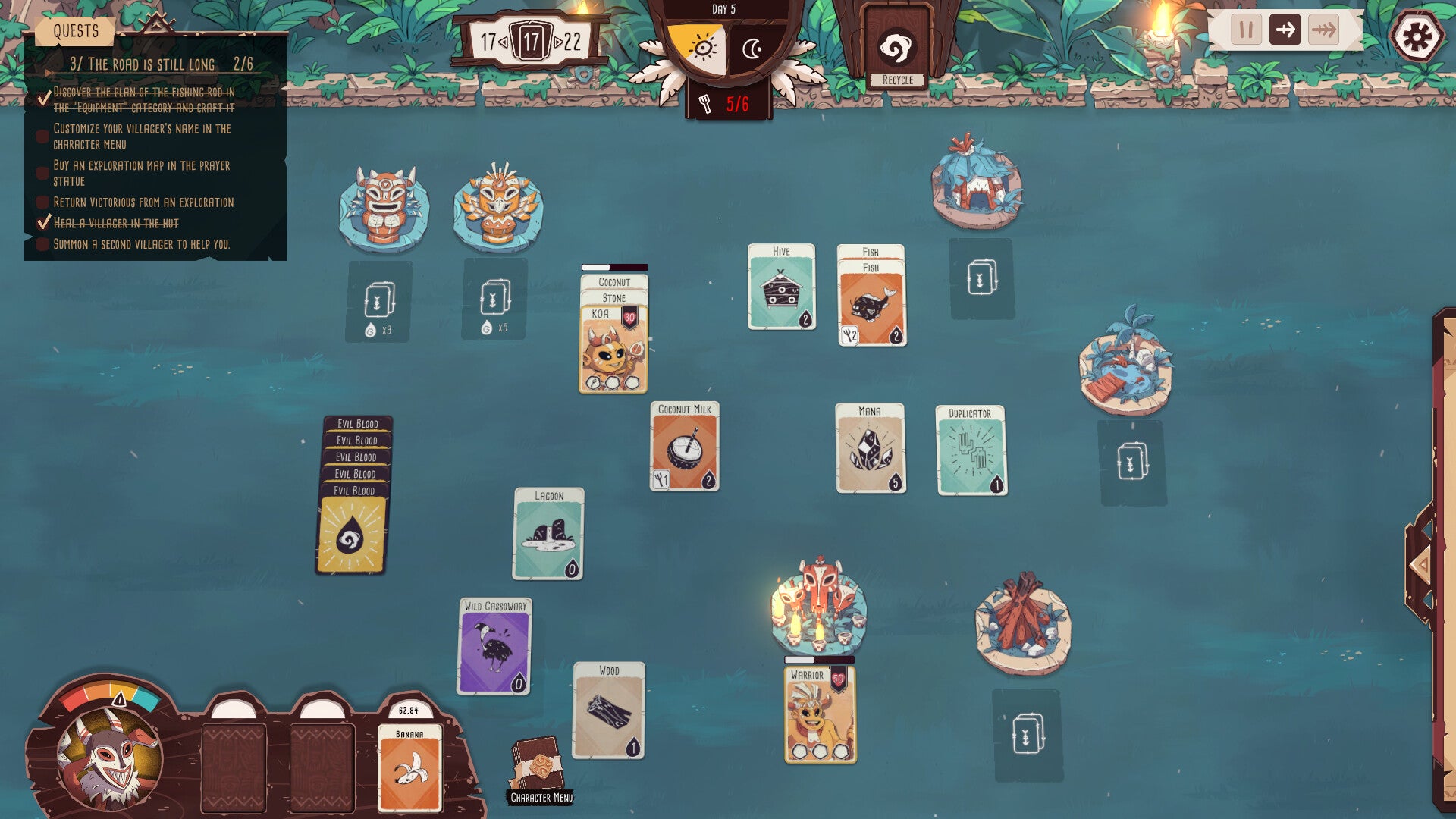 Head out on expeditions to discover new resources and expand your options. But tread carefully – the wilderness is bustling with dangerous wildlife. Use your deck-building skills to create the perfect strategy against your opponents in combat to overcome these threats and return victorious.