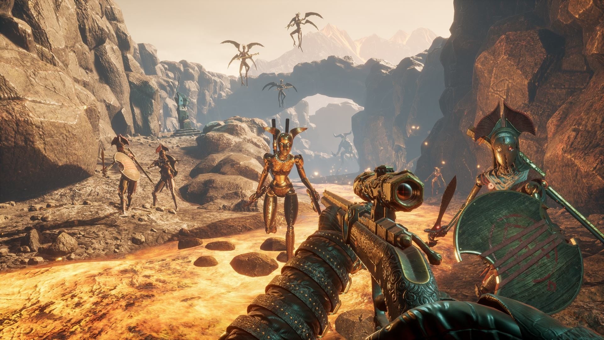 Survive the harsh environs of the scorched cliffs of Theseus, the dilapidated temples of Orpheus, and the volcanic foundries of Hephaestus. Navigate crumbling labyrinths, molten lakes of pure gold, and shattered mountains caught in the swallow of Charybdian whirlpools.