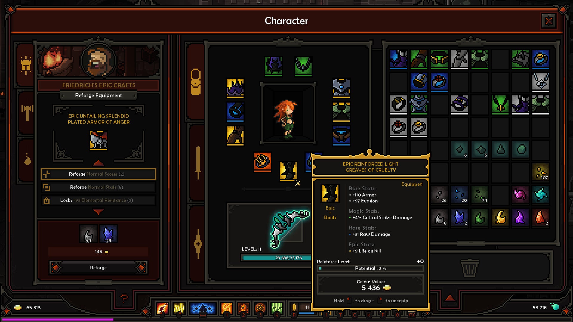 Find and collect Normal, Magic, Rare and Epic items with completely random properties but also shiny Legendary items with more than 200 unique affixes.