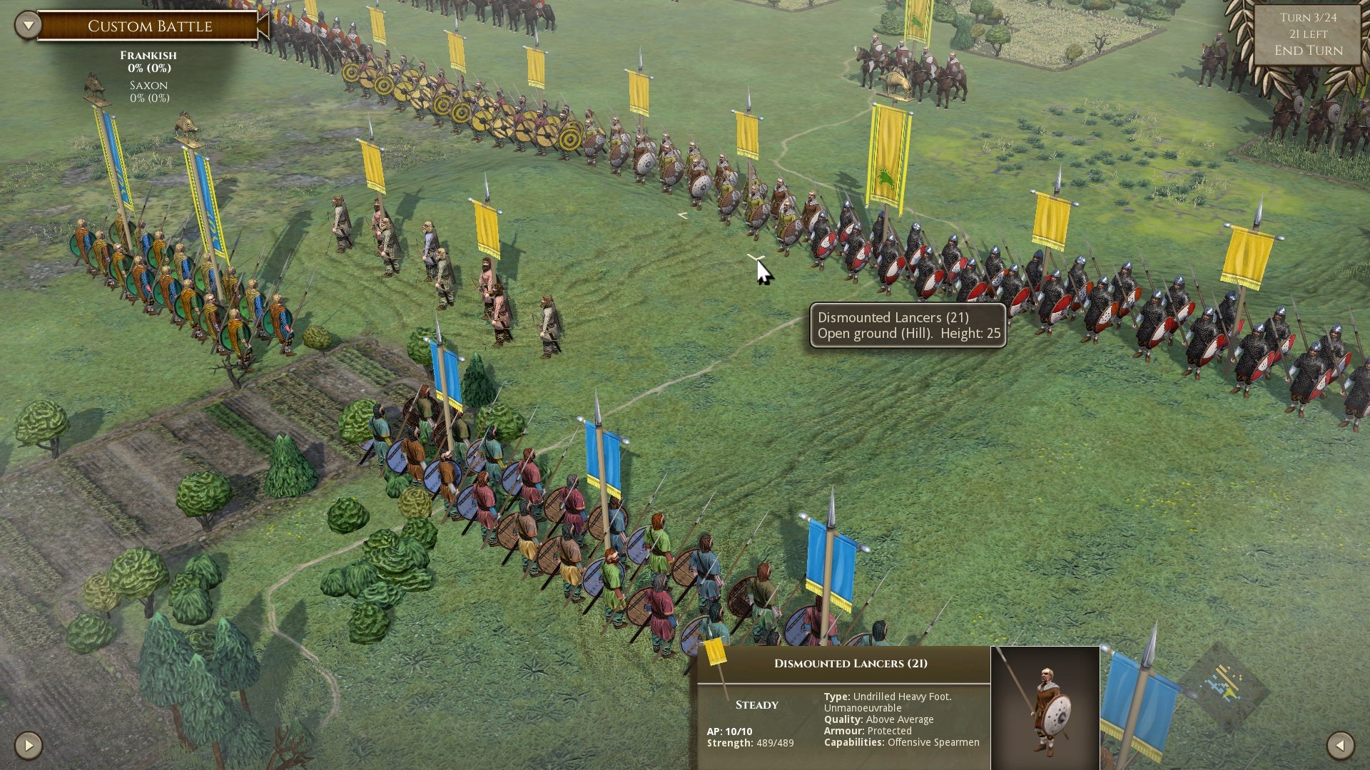 New Allies feature added in the accompanying game update allows you to include historical allies in either or both armies for SP and MP Custom Battles throughout the period covered by the game – now 680 BC-1040 AD. The game creates a composite army list drawn partly from the main army list and partly from the allied army list. This effectively increases the number of army lists to more than 700. (Purchase of the appropriate DLCs is necessary to access them all). Including “what if” battles, this increases the number of potential matchups to a mind-boggling 500,000 – before unit selection!